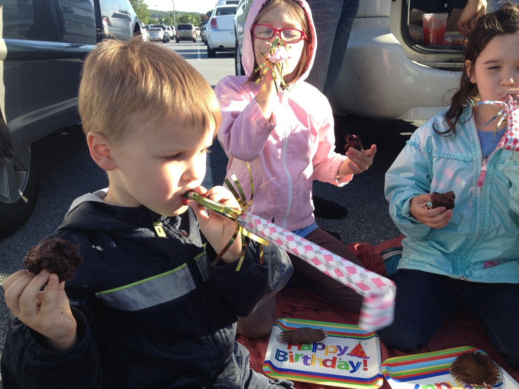 My mom prepared tons of food for lunch and dinner. We tailgated in the parking lot for lunch before we went into the park and again in the evening with cupcakes and party horns.