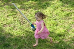 In January my husband built wooden swords for him and my son to practice sword fighting. Since they were made of wood, they had to stay out of reach and could only be brought down when he was playing with Daddy. From day one my husband has taught him that swords are not for hitting together, the goal is to go for the body. Not quite the approach I would have taken but I must admit that he’s gotten pretty good.