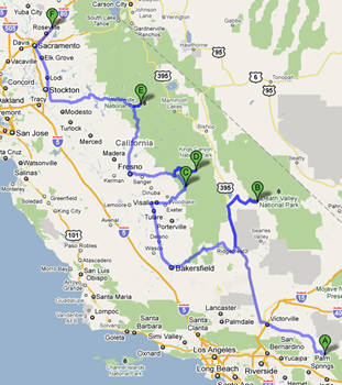 So, here is my proposed trip. It would be for 12 days. We’d fly into Anaheim on a Thursday and hopefully go and eat dinner by the Pacific Ocean that evening. Then on Friday we’d spend the day in Disneyland. Saturday we’d take off for Joshua Tree National Park and thus begin a week long camping adventure including Joshua Tree, Death Valley, Sequoia, Kings Canyon, and Yosemite National Parks.