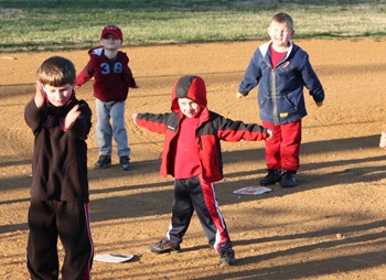My little guy had a grin on his face the entire practice. It was so cute to watch him stretching, grinning from ear to ear. He was stretching for baseball. Does it get better than that his face seemed to say? ![]()