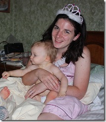 While some of the pictures in this post will most likely make it to a scrapbook (even though the grown adult wearing her tiara on her own free will is great black mail material for someone), I think this lunch shot which captures 4 different people all taking a bite at the same time and each looking in a different direction, probably won’t. For more fun or embarrassing pictures and stories, visit Kristen at We are THAT Family.