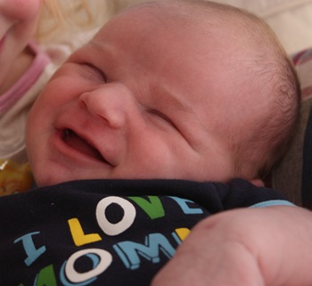 And because it just seems too soon to do a post without still including a picture of the baby, here is a completely unrelated picture from last week that I love. Look, we caught him “smiling” in his sleep.