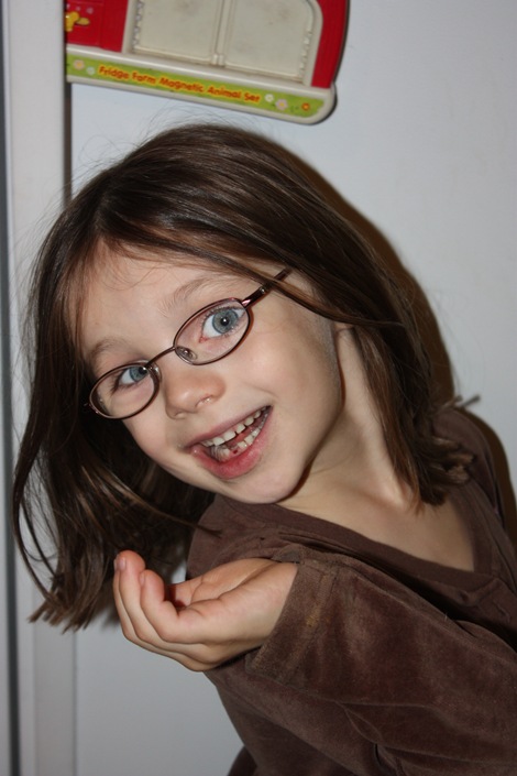 A few weeks later our 5 year old started proclaiming that her tooth was wiggly. I must confess at first I didn’t give it much thought… thinking she was exaggerating… but upon further investigation, I realized not only was it loose, but the new adult tooth was coming in already behind it (Yes… I see a very large orthodontic bill looming in our future).